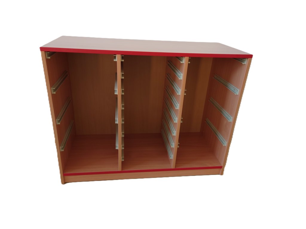Skříňka na plastové kontejnery Gratnells je vyrobena z lamina v designu buk. Hrany jsou zakončeny hranou v designu buku.